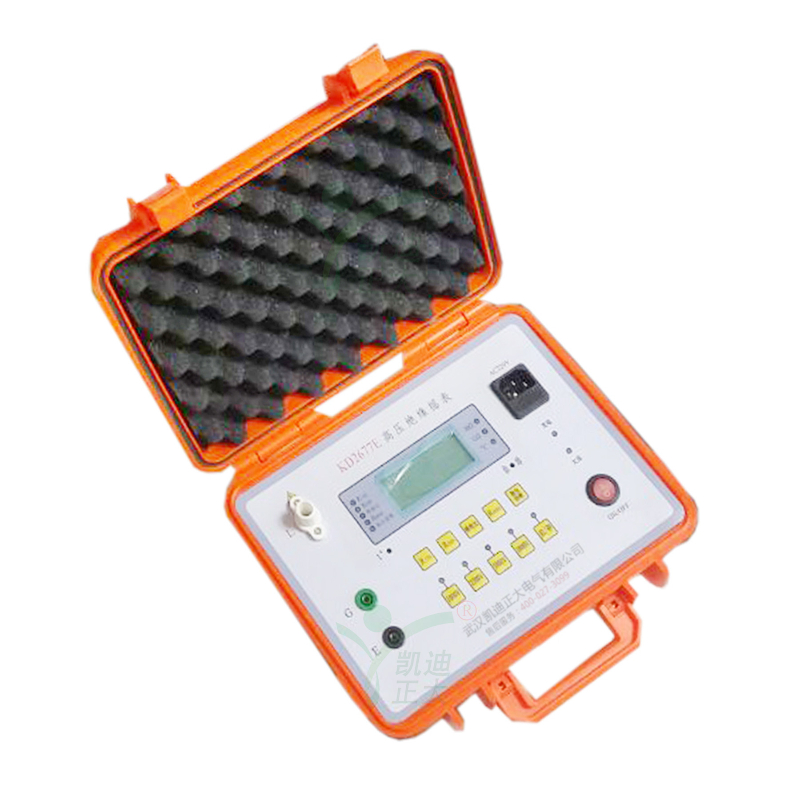 KD2677E高壓絕緣搖表采用高壓逆變電路將DC供電逆變?yōu)轭~定高壓輸出1000V、2500V、5000V,,10000V施加到被測試品兩端,采用了電壓、電流采樣電路,將采樣被測試品兩端的電壓和