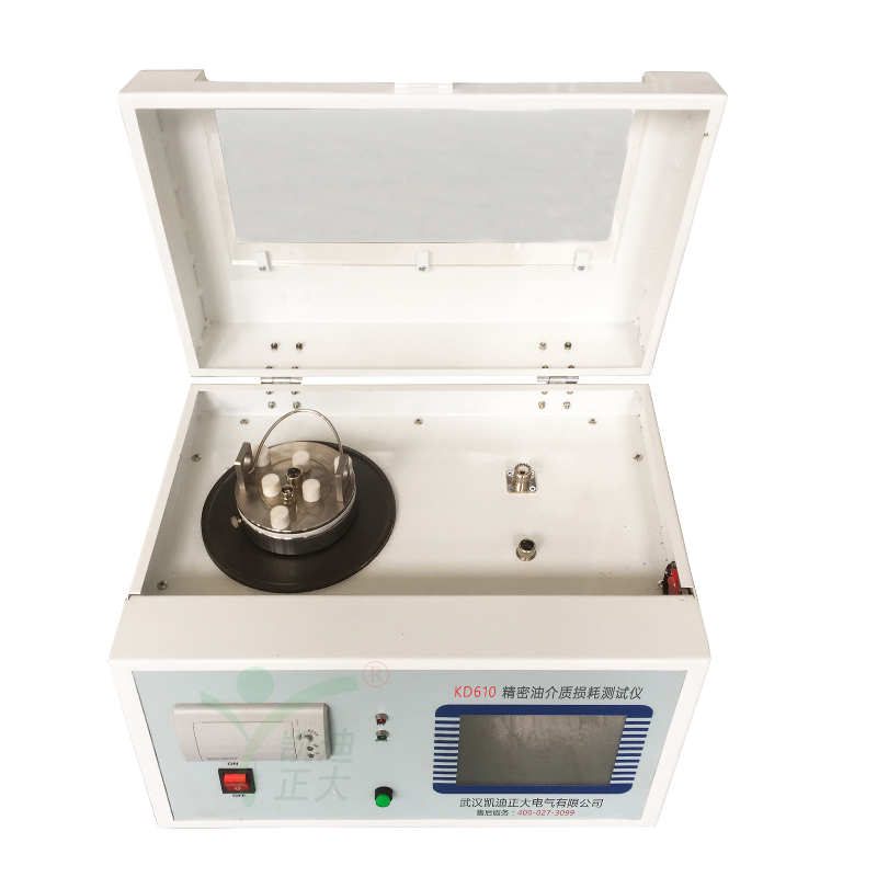 KD610精密油介質損耗測試儀是用于絕緣油等液體絕緣介質的介質損耗角及體積電阻率測試的一體化結構的高精密儀器。內部集成了介損油杯、溫控儀、溫度傳感器、介損測試電橋、交流試驗電源、標準電容器、高阻計、直流高壓源等主要部件。其中加熱部分采用了當前最為先進的高頻感應加熱方式,該加熱方式具備油杯與加熱體非接觸、加熱均勻、速度快、控制方便等優點。交流試驗電源采用AC-DC-AC轉換方式,有效避免市電電壓及頻率波動對介損測試準確性影響,即便是發電機發電,該儀器也能正確運行。內部標準電容器為SF6充氣三極式電容,該電容的介損及電容量不受環境溫度、濕度等影響,保證儀器長時間使用后仍然精度一致。