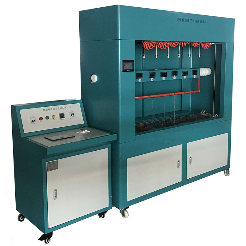 2.絕緣鞋試驗(yàn)采用里面放置小鋼珠的干式試驗(yàn)方法,擺脫了傳統(tǒng)的往鞋子里灌水做試驗(yàn),試驗(yàn)完畢后不易曬干的做法。手套試驗(yàn)采用注水的試驗(yàn)方法,設(shè)備可對(duì)手套自動(dòng)注水,試驗(yàn)人員只需按要求安裝好手套,提高工作效率。