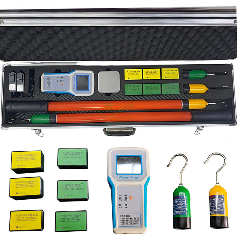 儀器引用《DL/T971-2005帶電作業(yè)用交流1KV-35KV便攜式核相儀》,采用無線傳輸技術(shù),操作安全可靠,使用方便,克服了有線核相器的諸多缺點(diǎn)。
