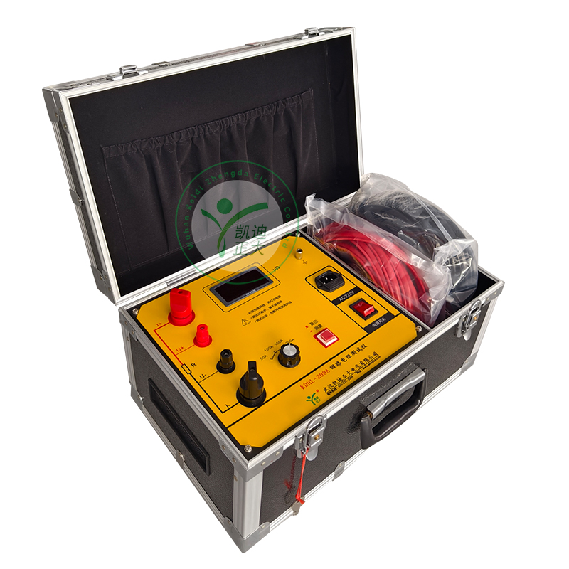 KDHL-200A回路電阻測試儀是根據中華人民共和國電力執行標準DL/T845.4-2004,采用高頻開關電源技術和數字電路技術相結合設計而成。它適用于開關控制設備回路電阻的測量。其測試電流采用國家標準推薦的直流100A和200A。可在電流100A的情況下直接測得回路電阻,也可以在電流200A的情況下直接測得回路電阻,最后的測試結果都用數字顯示出來。該儀器測量準確、性能穩定,符合電力、供電部門現場高壓開關維修和高壓開關廠回路電阻測試的要求。