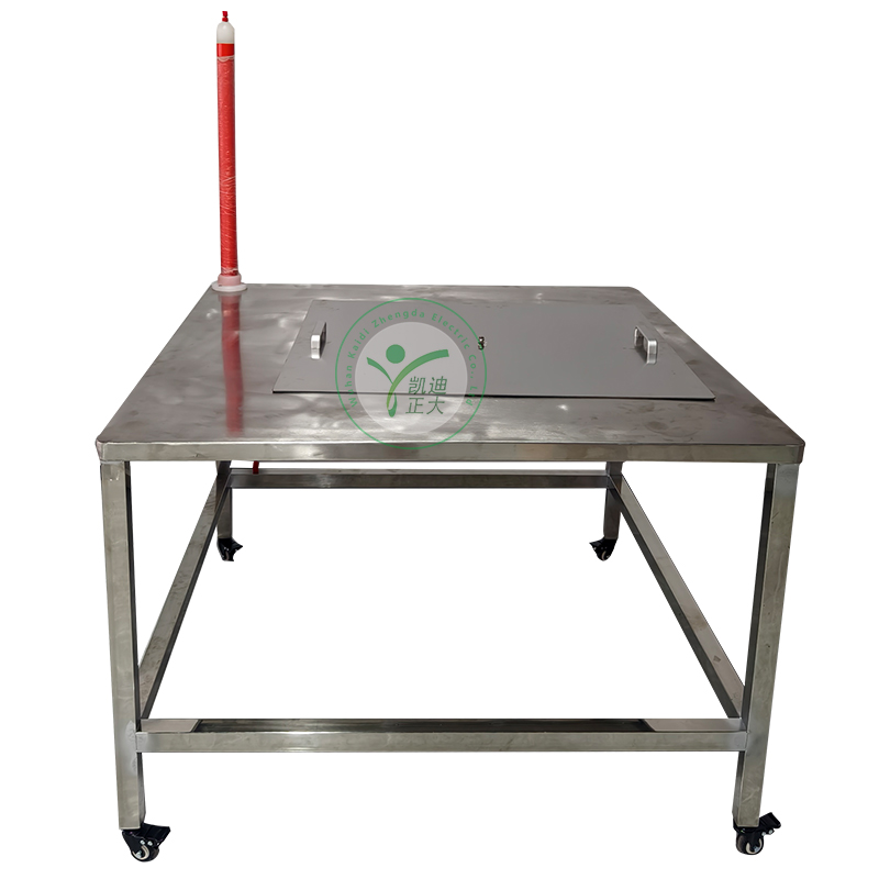5.測試臺具有干試和濕試兩種工作模式,測試臺裝有全自動注水裝置,便于試品注水操作,干試時,備有鋼珠可以作為絕緣靴的高壓電極。