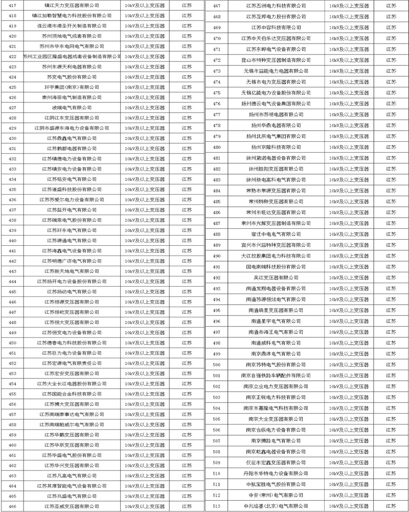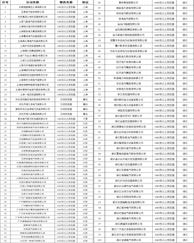 附各省市電力公司符合此次核實(shí)標(biāo)準(zhǔn)的變壓器企業(yè)名單:
