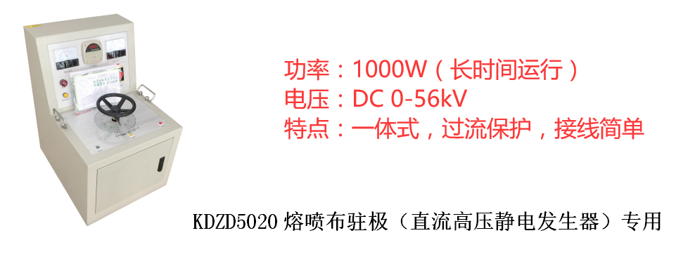 KDZD5020輸出電壓50kV/120kV可選(其他電壓可定制);輸出電流80mA(熔噴無紡布加靜電典型應用)
