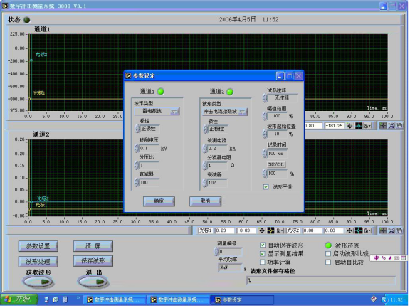 10-2沖擊電壓電流波形自動測量記錄分析軟件操作畫面: