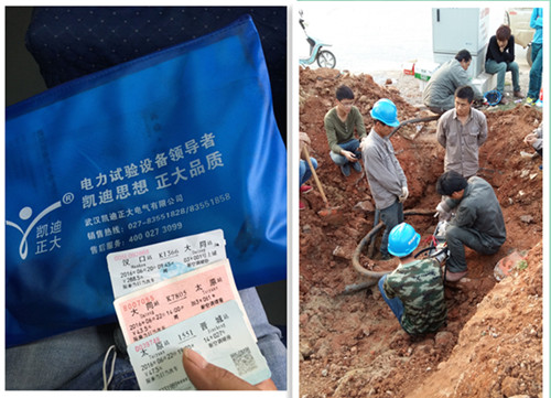 李工用KD-216A高壓電纜故障檢測儀、KDYDJ工頻耐壓操作箱、油浸式試驗變壓器、脈沖高壓電容、KD305數顯絕緣電阻測試儀設備,得于精湛的技術,良好的電力檢測設備,終于在6月23日中午之前,將電纜故障就找到了。最后,柿莊南采氣廠的電力得以全線恢復。設備部張部長對我司的售后服務表示滿意,為用戶排憂解難給予贊美。