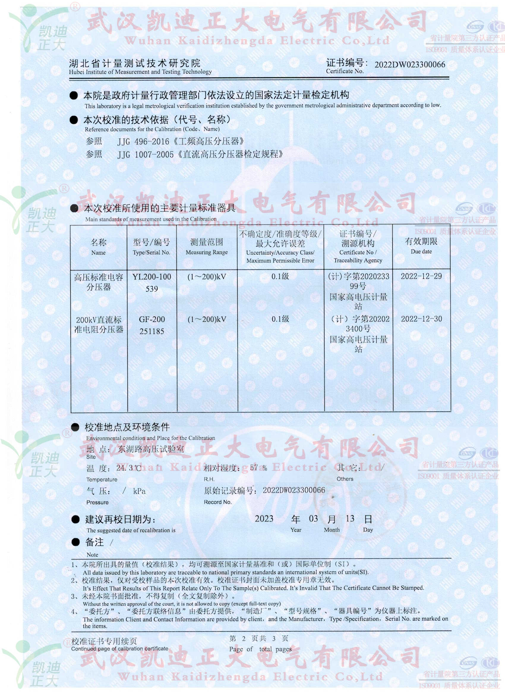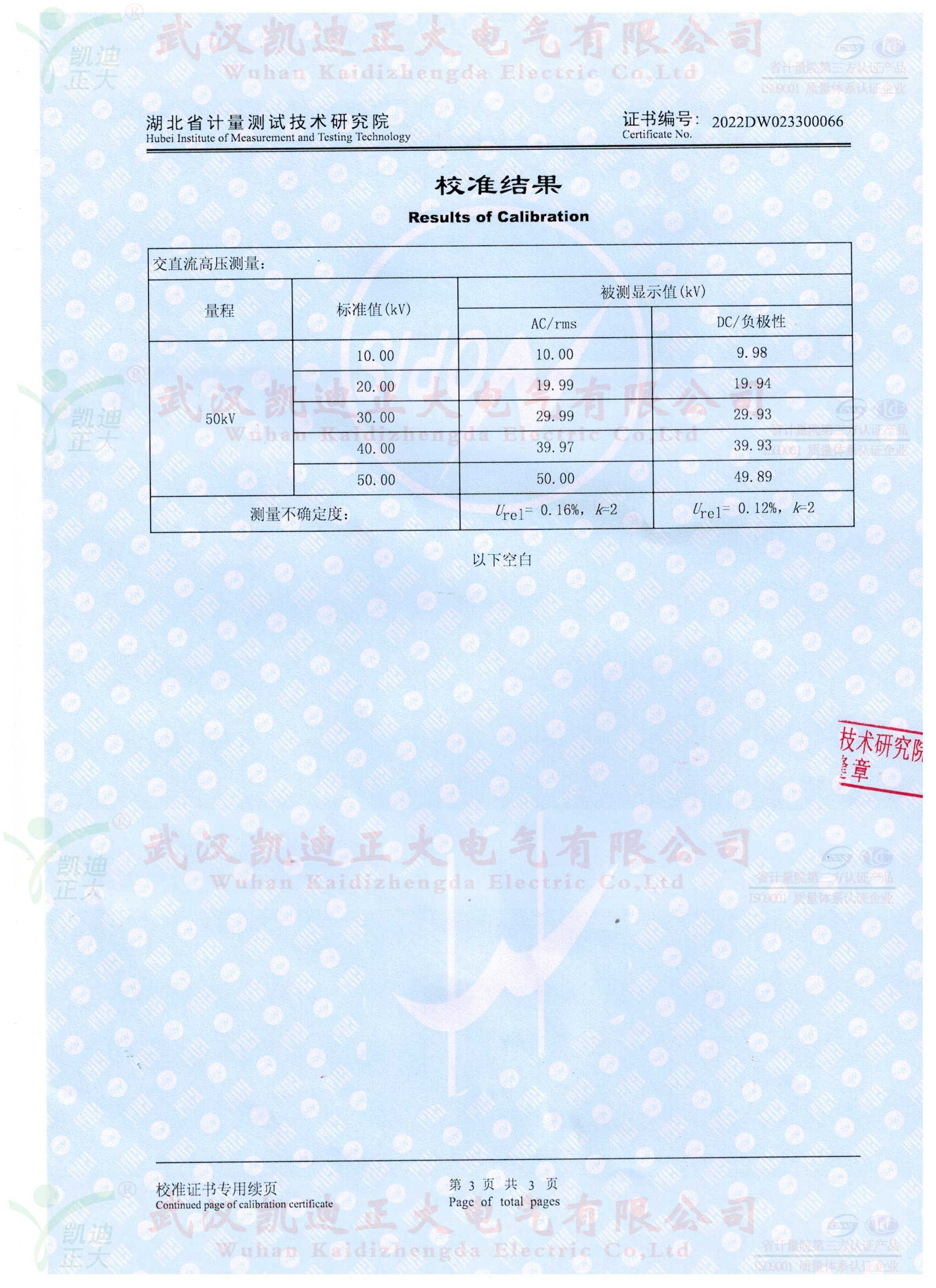 校準點包括 0、10kV、20 kV 30 kV 40 kV 50 kV;直流電壓 0-50kV,校準點包括0、10kV、20 kV 30 kV 40 kV 50kV。送至省級及以上計量院進行校準或檢定。