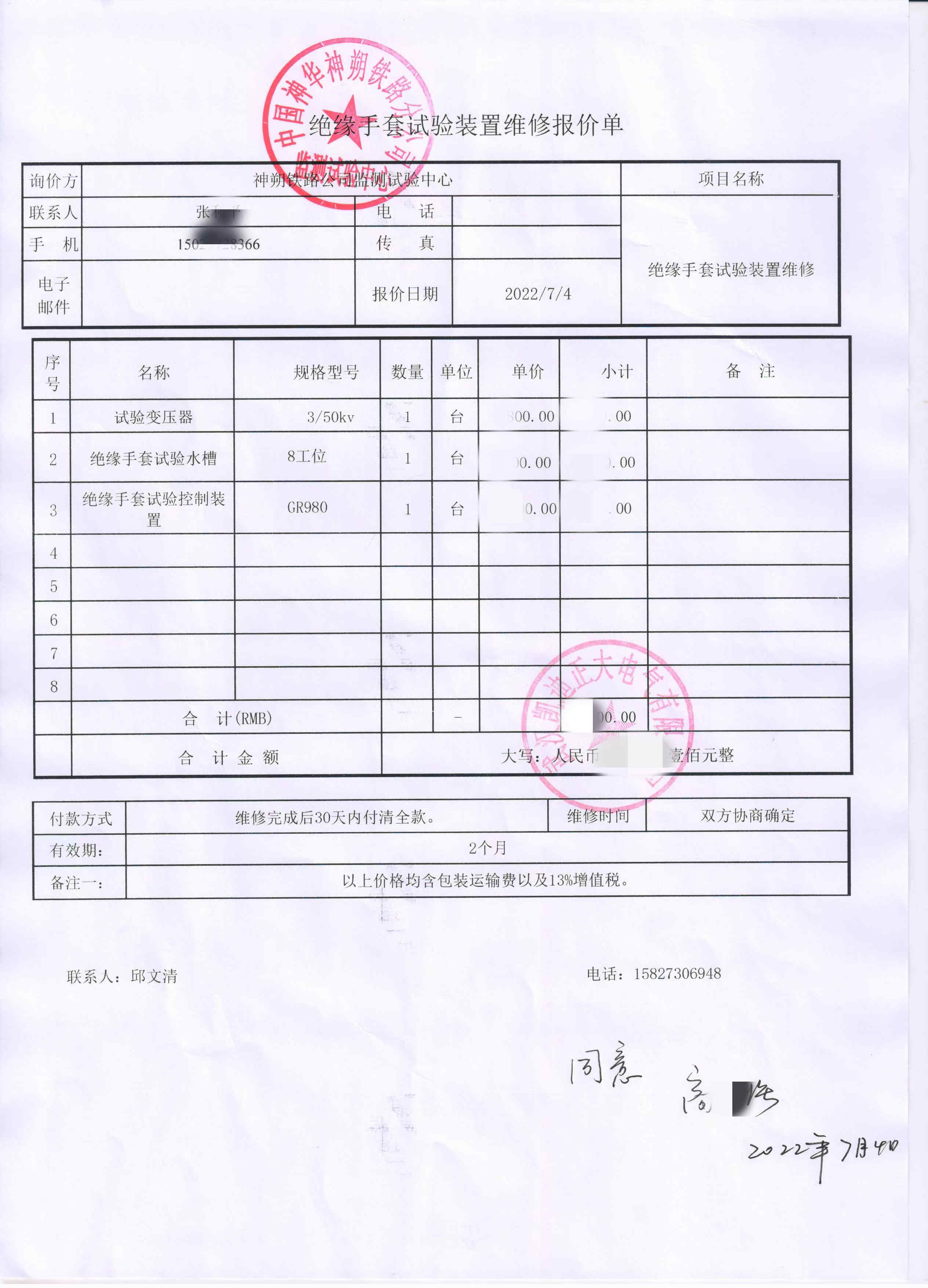 2022年,根據(jù)公司制度標準一體化建設工作部署,公司組織修訂了《國家電網(wǎng)公司質量監(jiān)督工作規(guī)定》和《國家電網(wǎng)公司電力安全工器具管理規(guī)定》,經公司42014年第313次規(guī)章制度管理委員會審議通過,現(xiàn)予印發(fā),請認真貫徹落實。需維修和置換全新KDJS-6絕緣手套試驗系統(tǒng),包含8工位絕緣手套靴試驗水槽/3kvA50kV絕緣手套試驗升壓干式試驗變壓器、電氣設備交流碾壓試驗變壓器(油式10kvA150kV)等設備一批。