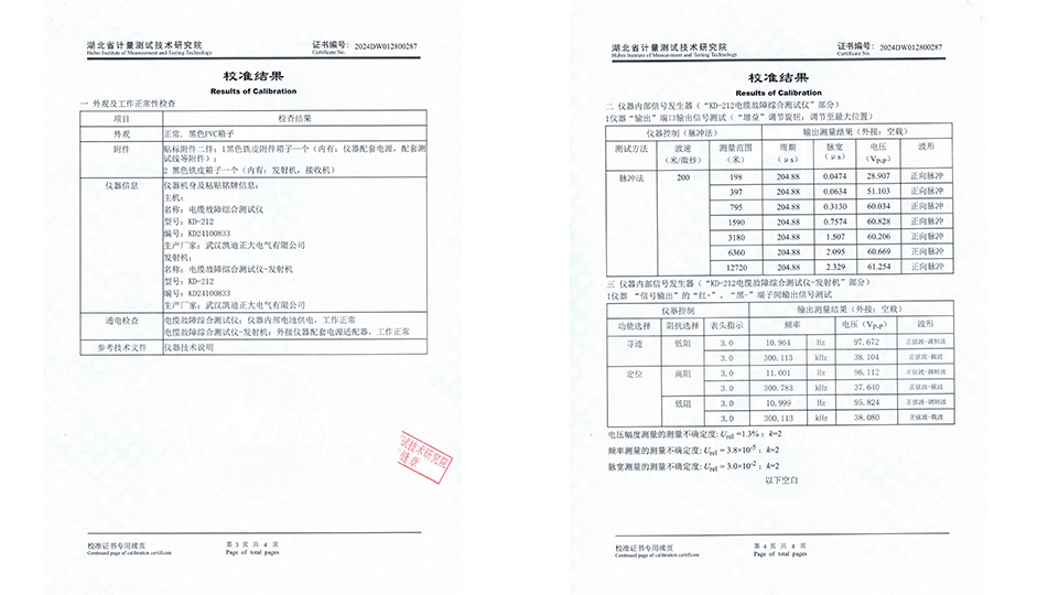 KD212電纜故障綜合測試儀嚴(yán)格遵循了JJG 840-2015《函數(shù)發(fā)生器》等相關(guān)校準(zhǔn)標(biāo)準(zhǔn),確保了測量結(jié)果的準(zhǔn)確性和可靠性。在頻率測量方面,該測試儀覆蓋了從直流(DC)到500MHz的寬廣范圍,充分滿足了現(xiàn)代通信和電力系統(tǒng)中對高頻信號測試的需求。同時在電壓測量上,KD212也展現(xiàn)出了精度和穩(wěn)定性和優(yōu)勢,測量范圍可達(dá)(0.001~100)V,確保了在不同電壓等級下的電纜故障檢測都能得到準(zhǔn)確無誤的結(jié)果。