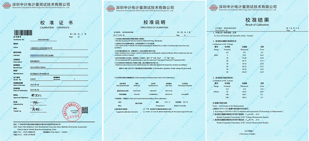 近日,陜西省寶雞市某發(fā)電有限責(zé)任公司訂購的武漢凱迪正大電氣有限公司的發(fā)電機轉(zhuǎn)子交流阻抗測試儀與ZGS-SZ60kV/200mA水內(nèi)冷發(fā)電機耐電壓測試儀,成功通過了深圳中計電計量測試技術(shù)有限公司的嚴格校準,并榮獲校準證書。