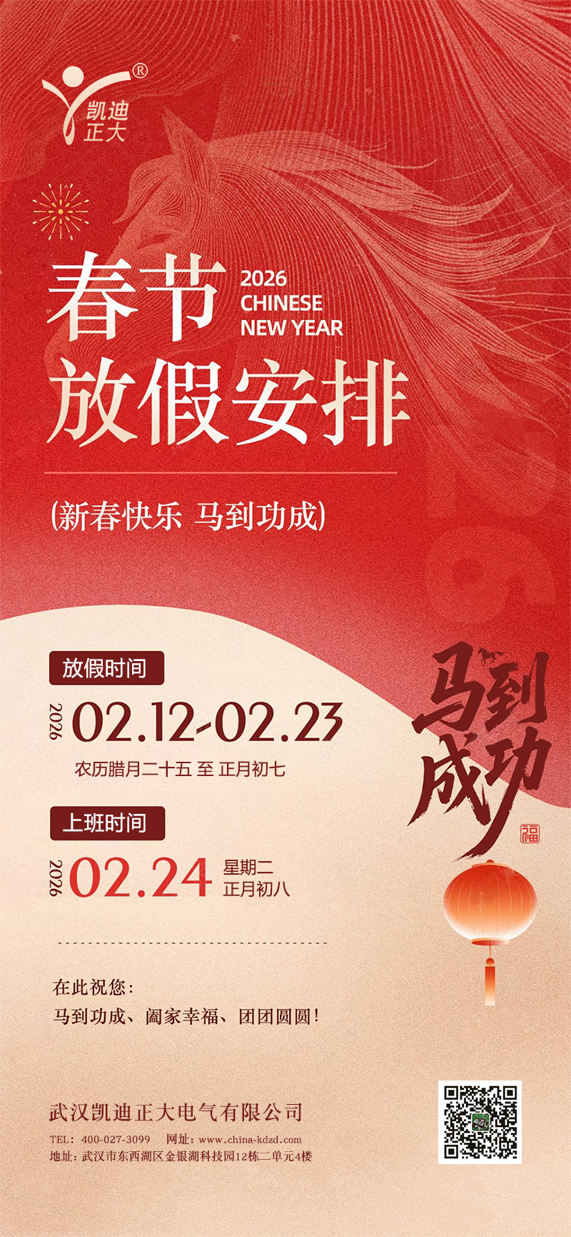 武漢凱迪正大2026年春節(jié)放假安排的通知